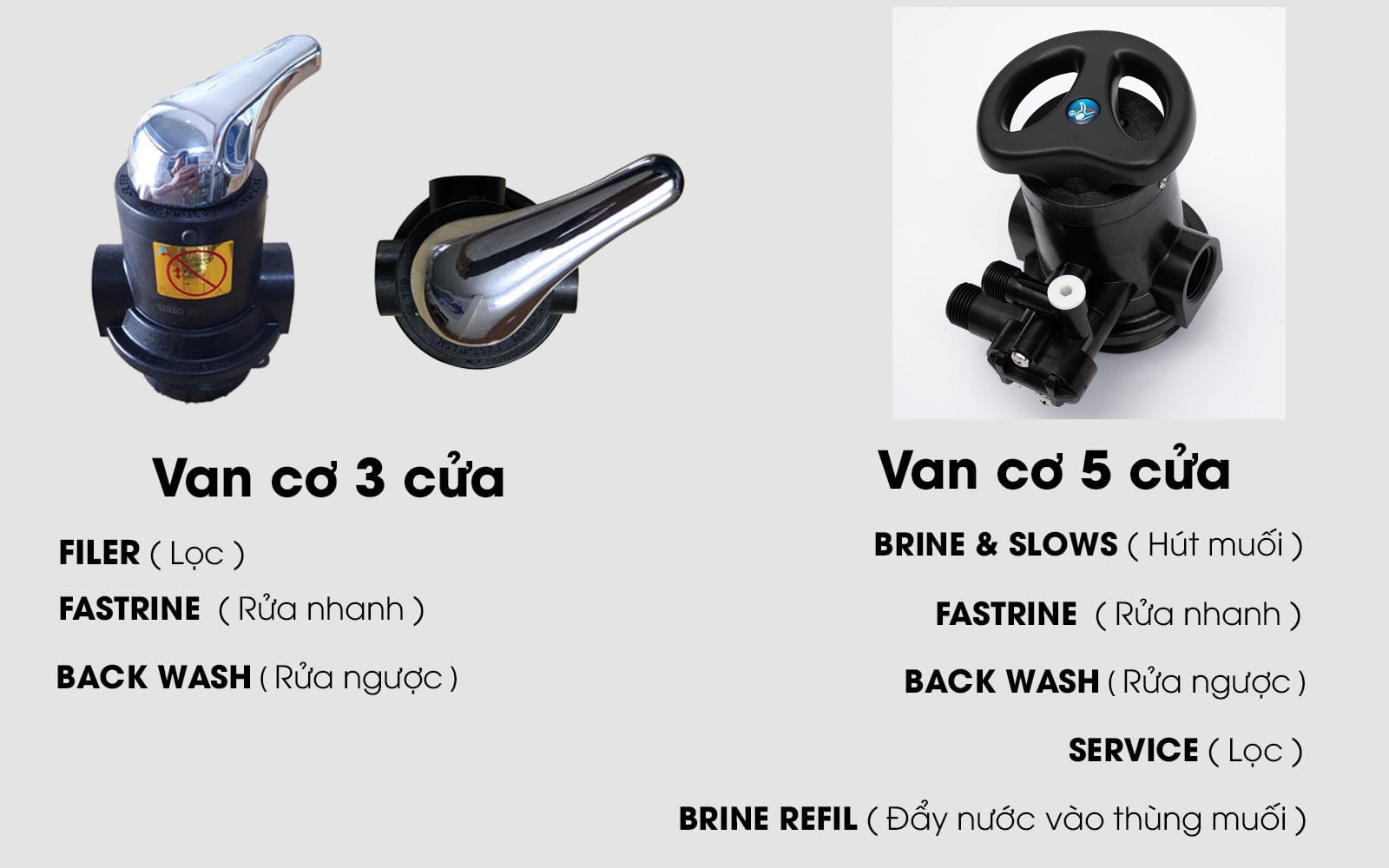 Van tay hút muối 5 cửa 5 chế độ