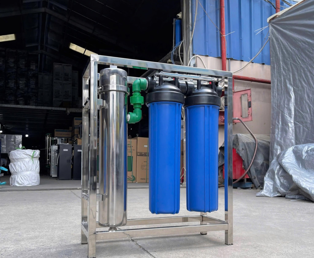 sử dụng 2 cốc lọc chặn 20inch béo với lõi lọc 5micron có thể chặn tất cả cặn bẩn ,bùn đất vi khuẩn có kích thước lớn hơn 5micron và 1 màng UF siêu lọc siêu sạch công suất 1500l/h thoải mái để cho chung ta sử dụng sinh hoạt hàng ngày.