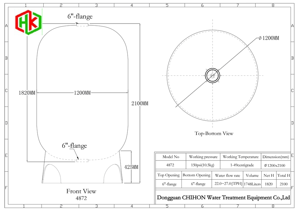 - Cổ kết nối: Top/bottom 6″ mặt bích