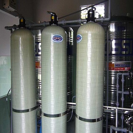 Thiết bị xử lý KL nặng (A): ở đây dưới tác dụng của lớp vật liệu lọc cho phép loại bỏ các tạp chất, cặn lơ lửng đồng thời xử lý một phần hàm lượng sắt và Mn còn trong nước nguồn, nhờ tính năng đặc biệt của hạt Cozoset tạo vị cho nước. Sau đó được đưa vào cột lọc chứa than hoạt tính