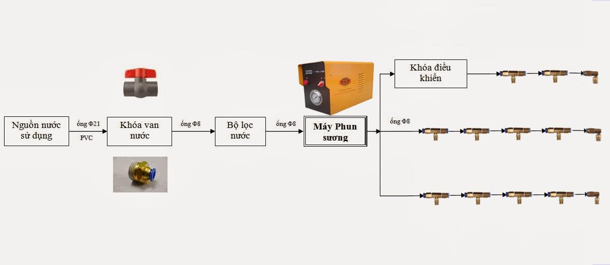 - Một số linh kiện đi kèm dùng trong hệ thống phun sương