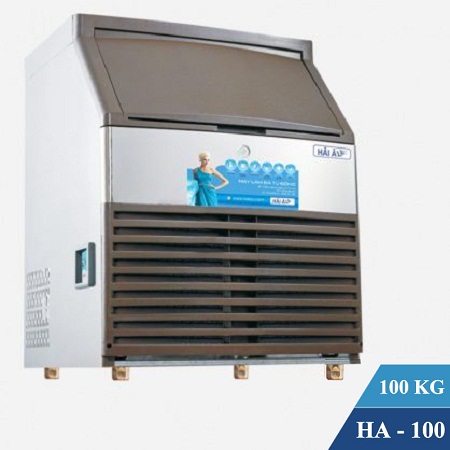 Máy làm đá viên Hải Âu H A 100 có kích thước 670 x 670 x 880 mm sử dụng nguồn điện 220v công suất tiêu thụ điện 700W, với sản lượng làm đá đạt 100kg/24h sử dụng hệ thống làm lạnh bằng gió và nước.