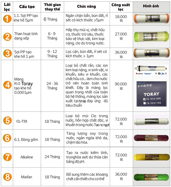 + CẤU TẠO CHỨC NĂNG VÀ THỜI GIAN THAY THẾ CÁC LÕI LỌC
