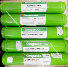 +Lõi lọc nước kangaroo số 4 ( màng RO): Nguyên liệu: Màng RO thẩm thấu ngược, có khe lọc đạt 0.0001 micron Chức năng: Loại bỏ hoàn toàn chất rắn,khí trong nước, các ion kim loại, vi sinh vật, vi khuẩn, siêu vi khuẩn, các chất hữu cơ làm cho nước trở nên tinh khiết nhưng không làm thay đổi tính lý- hóa của nó. Tuổi thọ: 1 năm ( khoảng 52,000 lít)