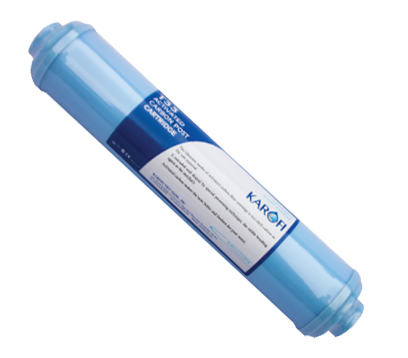 - Nguyên liệu: Màng RO thẩm thấu ngược, có khe lọc đạt 0,0001 micron - Chức năng: Màng Ro được làm từ chất iệu đặc biệt ( TFC Thin Film Composite) được gắn chặt với nhau và cuộn lại thành một cấu hình dạng xoắn ốc. Trên bề mặt màng gồm các lỗ nhỏ li ti có kích thước khoảng 0,1- 0,5 nonamet ( chỉ lớn hơn khoảng 2-3 phân tử nước ) và chỉ cho phân tử nước đi qua .Vì vậy có thể loại bỏ hoàn toàn chất rắn, khí hoàn toàn trong nước, các Ion kim loại nặng, vi sinh vật, vi khuẩn, siêu vi khuẩn, các chất hữu cơ làm cho nước trở nên hoàn toàn tinh khiết nhưng không làm thay đổi tính lý – hoá của nó.- Tuổi thọ: 2-4 năm (~ 43.700 – 65.500 lít)
