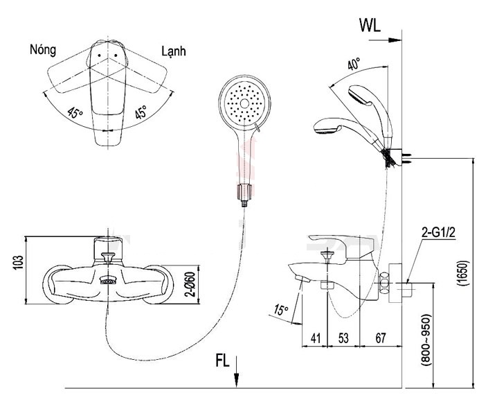 Bản vẽ kỹ thuật của Sen tắm INAX BFV-213S-3C nóng lạnh HK 1102