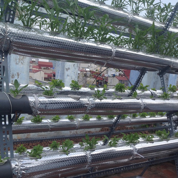 trồng rau thủy canh trên sân thượng